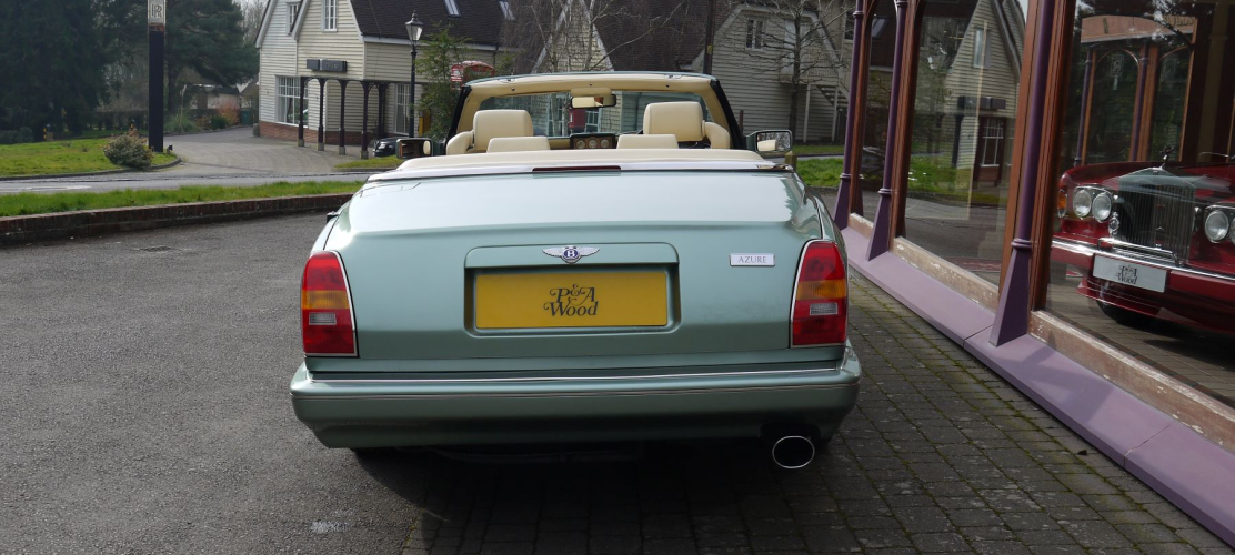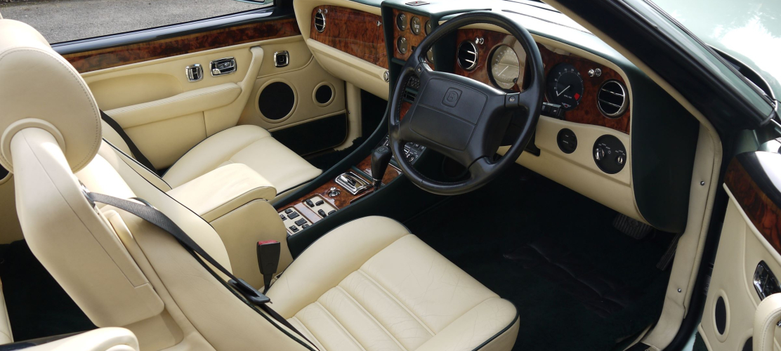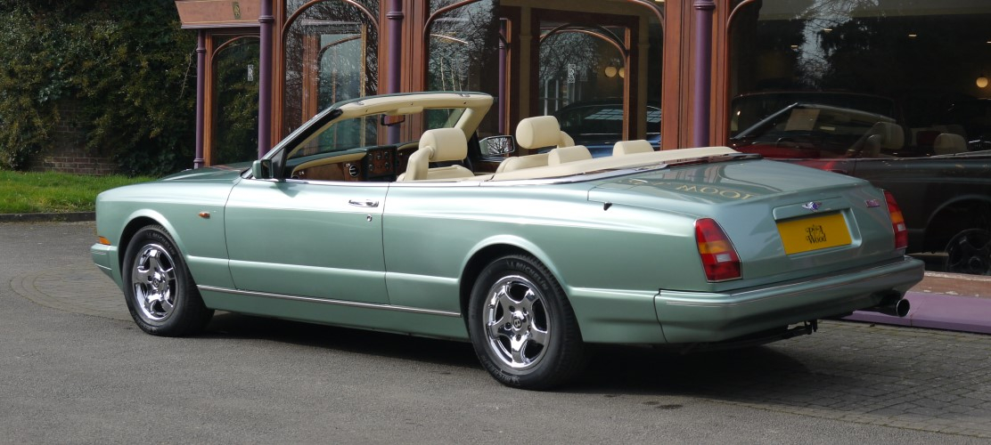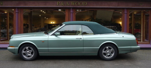 Aurora with Green hood and Magnolia hide contrast Spruce. Only 34,000 miles with full history. Maintained by P & A Wood for many years. Fitted with badge bar, seat switch surround in hide and chrome Turbo RT wheels. Very attractive and rare colour scheme. Excellent condition.