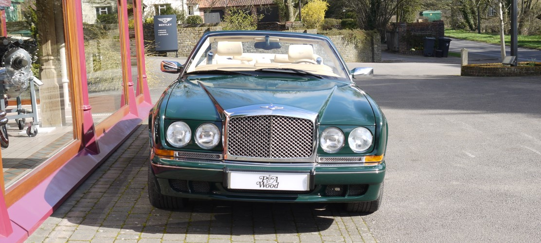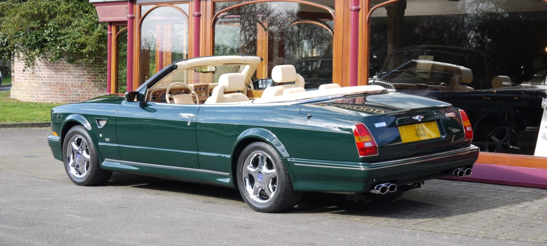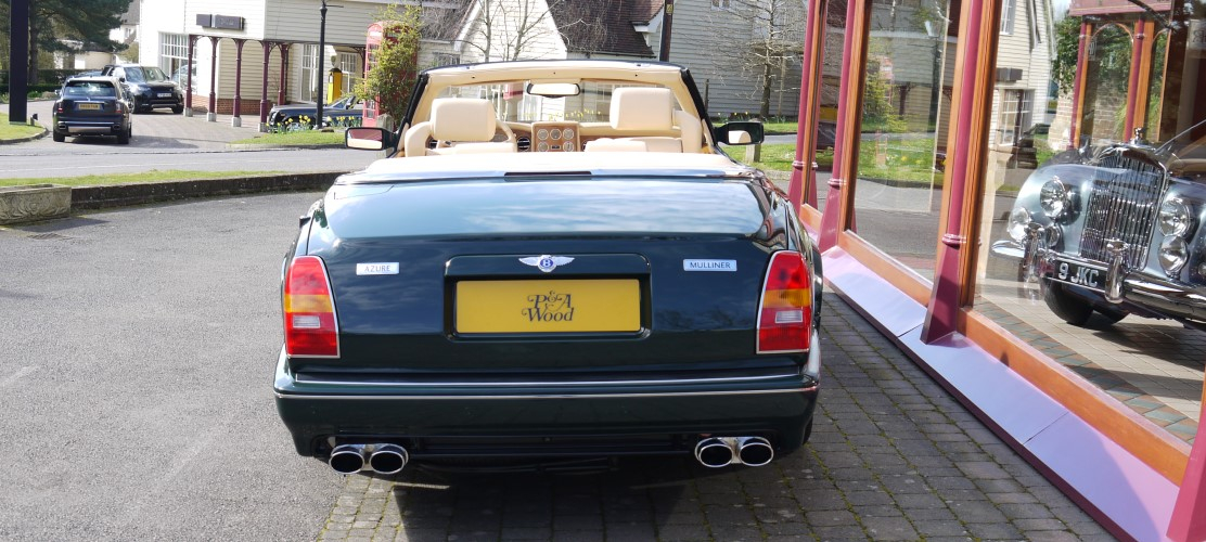 Discover MoreRacing Green with Beige hood and Barley hide contrast Tangier and Burr Oak veneer. 18,000 miles with history. Maintained by P & A Wood in recent years. Fitted with wide wheel arches, Continental T style chrome wheels, chrome radiator shell, quad exhaust tailpipes, front wing vents, parking sensors, veneered door panels, chrome instrument bezels and extended seat runners. One of relatively few wide bodied Mulliner models made. Considered by many as the most desirable Azure model. Fitted with the 420bhp engine. Excellent condition.